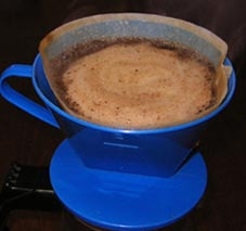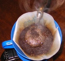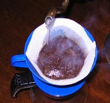 最後にポットを回して出来上がった珈琲をかきまぜてから、カップに注ぎます。(もちろんカップもあらかじめお湯を入れて暖めておいてください。)
