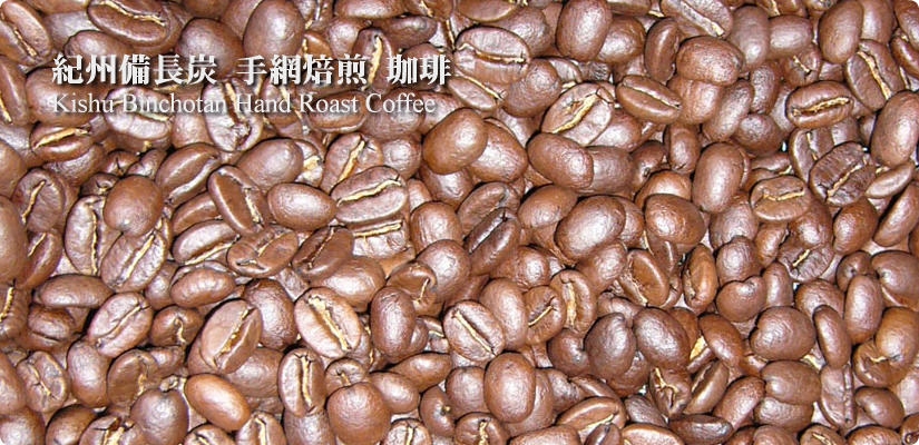 紀州備長炭手網焙煎珈琲の特徴 1.熱源は本物の紀州備長炭です 2.機械式のロースターを使わず手網焙煎です。 3.1回に生豆250gを焙煎し、仕上がりが200g程度になります。 4.ご注文を頂いてから焙煎を行います。